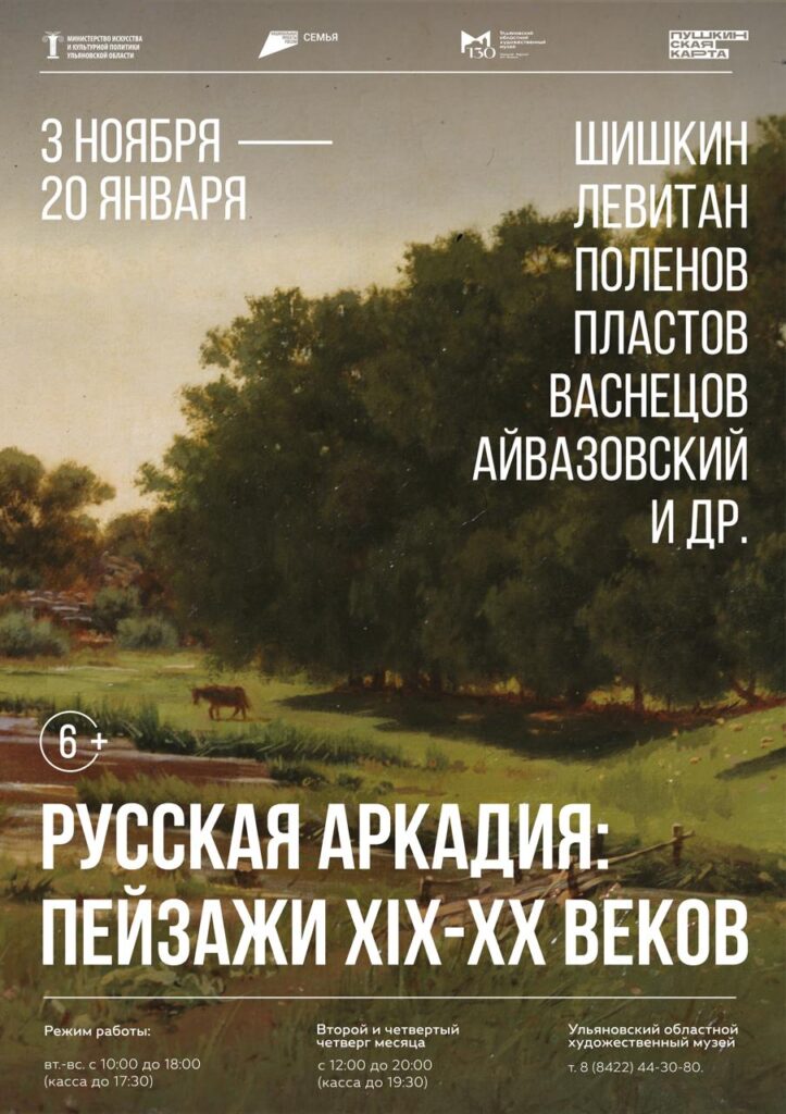 3 ноября в 17 часов в Ульяновском областном художественном музее открывается выставка русского пейзажа XIX-XX веков «Русская Аркадия. Пейзажи XIX – XX веков», посвященная 130-летию основания музея.