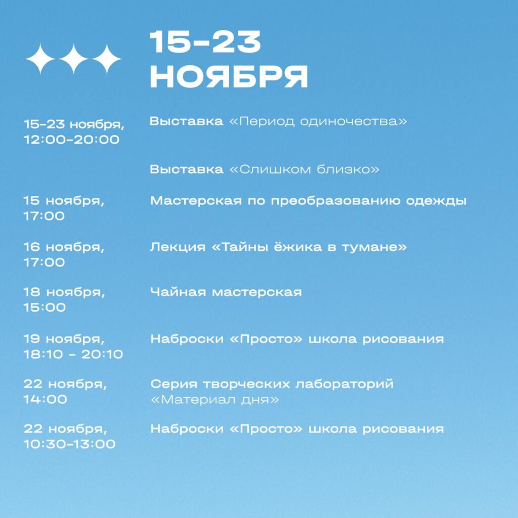 15 ноября – 23 ноября | Выставка «Слишком близко» (по прейскуранту) | 12:00 – 20:00 МЦСИ | 12+ Пушкинска я карта |