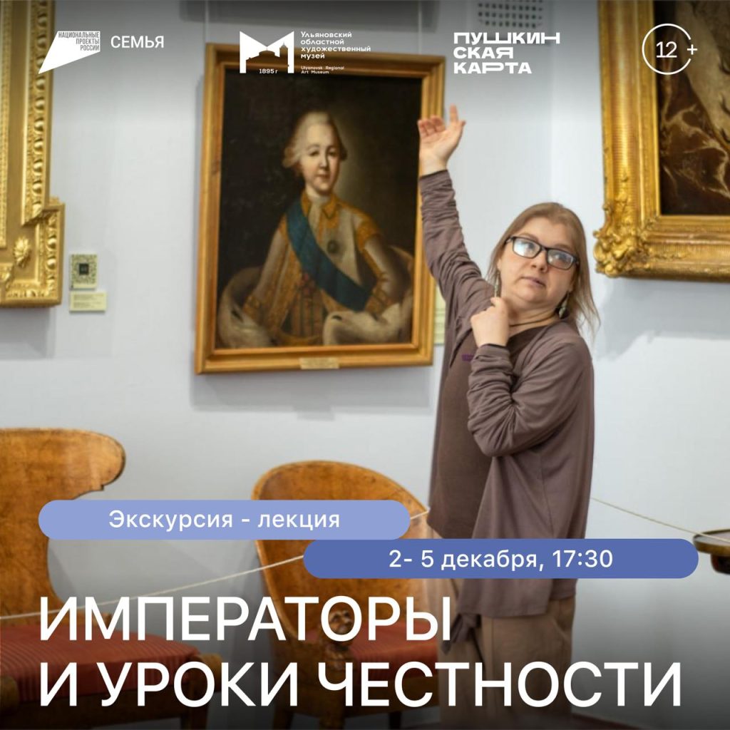 В процессе экскурсии посетители познакомятся с портретной живописью XVIII–XIX веков как источником исторических и этических знаний. Участники смогут исследовать портреты российских императоров из коллекции Ульяновского областного художественного музея, анализируя образы правителей России — Петра I, Екатерины II, Александра I и других.