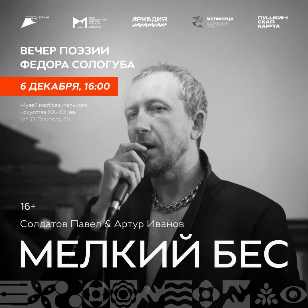 В рамках «Международного фестиваля-форума искусств «Аркадия. Музей» Павел Солдатов устроит иммерсивную перформанс-читку стихотворений Фёдора Сологуба под нойз/шугейз музыку Артура Иванова.
