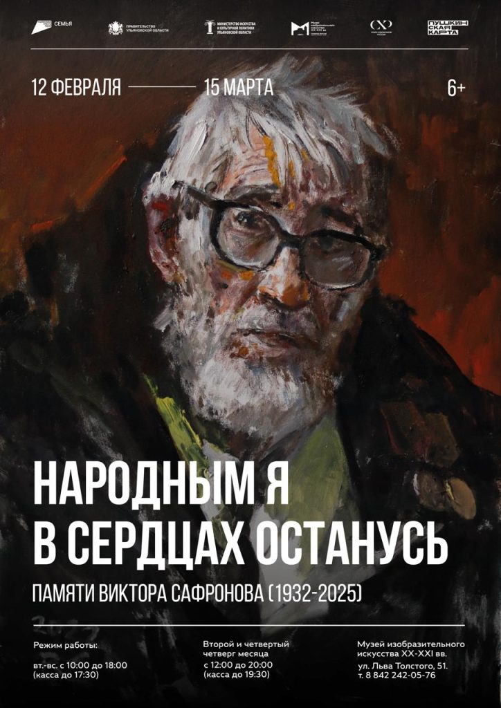 12 февраля 2026 года в 18.00 в Музее изобразительного искусства XXXXI вв. состоится открытие выставки произведений народного художника России Виктора Сафронова (1932-2025) «Народным я в сердцах останусь».