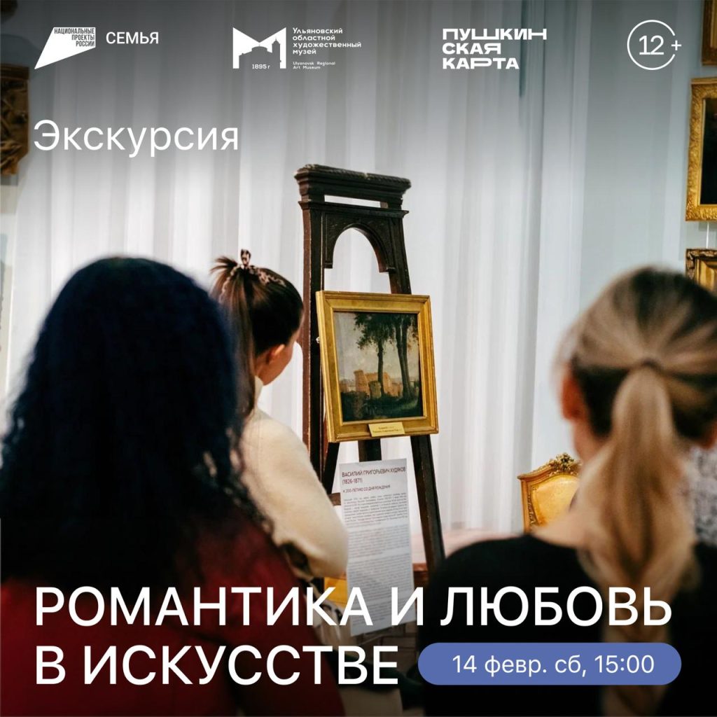 Участники экскурсии узнают о роли и разнообразии романтических сюжетов в зарубежном и русском искусстве через образцы живописи, скульптуры и предметов декоративно-прикладного искусства из собрания Ульяновского областного художественного музея.
