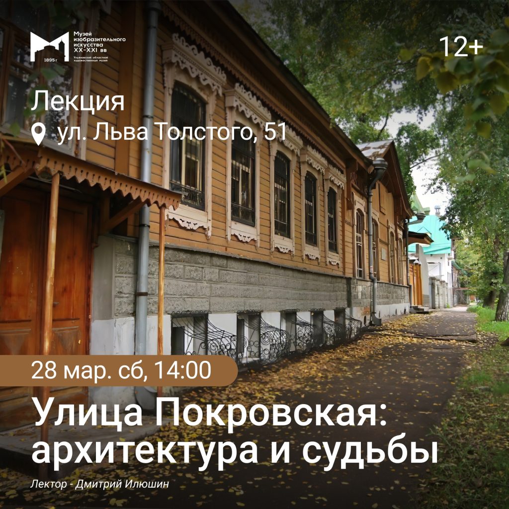 На лекции посетители познакомятся с историей современной улицы Льва Толстого, бывшей Покровской. С 1913 года два знаменитых архитектора Август Августович Шодэ и Фёдор Осипович Ливчак обосновались на одной улице – Покровской. Они являлись архитекторами многих зданий на улице Покровской и в городе Симбирске. На лекции посетители узнают о судьбе двух архитекторов и их построек. И это не просто здания – это история. История их владельцев, история жизни и история архитектуры.