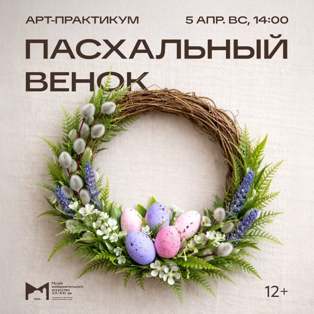 Продолжением беседы станет арт-практикум по изготовлению пасхального венка. Посетители погрузятся в атмосферу христианского праздника и научатся создавать уникальные композиции, используя основы из лозы, настоящие веточки вербы, флористические вставки цветов, листьев и трав, а также декоративные пасхальные элементы. В процессе творчества у участников появится возможность проявить свою индивидуальность и фантазию.