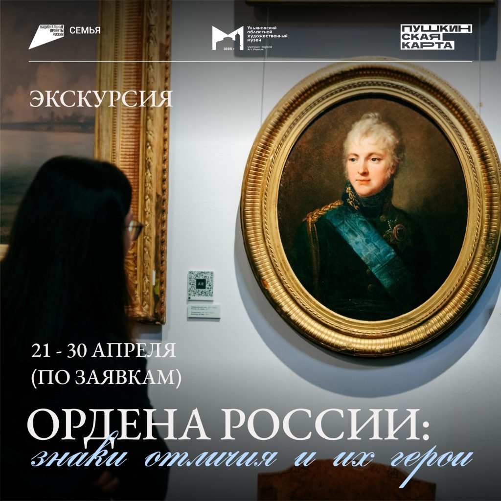На экскурсии, приуроченной ко Дню Победы посетители узнают об особенностях наградной системы Российской империи, существовавших орденах и медалях, о личностях, отмеченных этими наградами. Традиция чествовать людей, много и доблестно служивших Родине, имеет долгую историю. Достойных мужчин и женщин окружали вниманием и уважением. Военные подвиги, деятельность на благо страны и честная служба были истинным гражданским долгом каждого. Участники экскурсии смогут узнать больше о структуре, степенях различных орденов, уроженцах Симбирской губернии, отмеченных высокими наградами. На примере произведений из собрания Ульяновского областного художественного музея посетители узнают об ордене Святого Андрея Первозванного, Святого Георгия, Святой Анны и Святой Екатерины, которые изображены на портретах представителей высшего сословия Российской Империи.